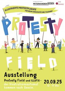 Die POPPY FIELD Projekte machen mit ihrer Wanderausstellung “Protesty Field” und dem Illufix – einem Illustrationsautomaten Halt auf dem Mittelhof Gessin und Ihr könnt euch Live zeichnen lassen!